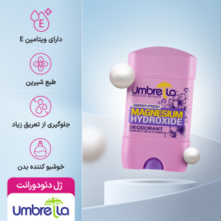 دئودرانت انرژی اند فرش آمبرلا با رایحه دلپذیر و مطبوع خود مخصوص خانمها بوده و برای استفاده روزانه گزینه مناسبی به شمار میرود. این محصول بافتی ژلی داشته، ضدتعریق است و به کاهش میزان تعریق پوست زیر بغل کمک میکند. ژل دئودورانت زنانه آمبرلا به سرعت روی پوست خشک شده، در خوشبو شدن و معطر ماندن ناحیه زیر بغل نقش بسزایی دارد و از بدبو شدن تعریق این قسمت جلوگیری مینماید. این محصول از ماندگاری طولانی برخوردار است و از پوست زیر بغل در برابر تعریق محافظت میکند.